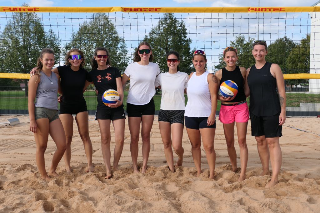 Beim Damenturnier spielten von uns Jule und Heike als Paarung. Die Netzhöhe beim reinen Damenturnier bot den Frauen die Möglichkeit, im Gegensatz zur Mixed-Höhe bei den meisten Turnieren, auch starke Angriffe zu zeigen. Bei super Wetter waren die meisten Spiele auf Augenhöhe.