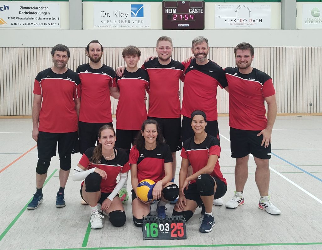 Saisonauftakt der Machmaduu I gegen die Gastmannschaft Team Spirit aus Schweinfurt. Nach der ersten Niederlage der Gäste im ersten Spiel wollten die sich natürlich verbessern. Wir spielten mit Heike als Steller, Marco und Noah in der Mitte, Christoph und Tina auf Außen sowie Freddy als Diagonalangreifer. Für uns das erste Saisonspiel mit dem neuen Spielsystem.
