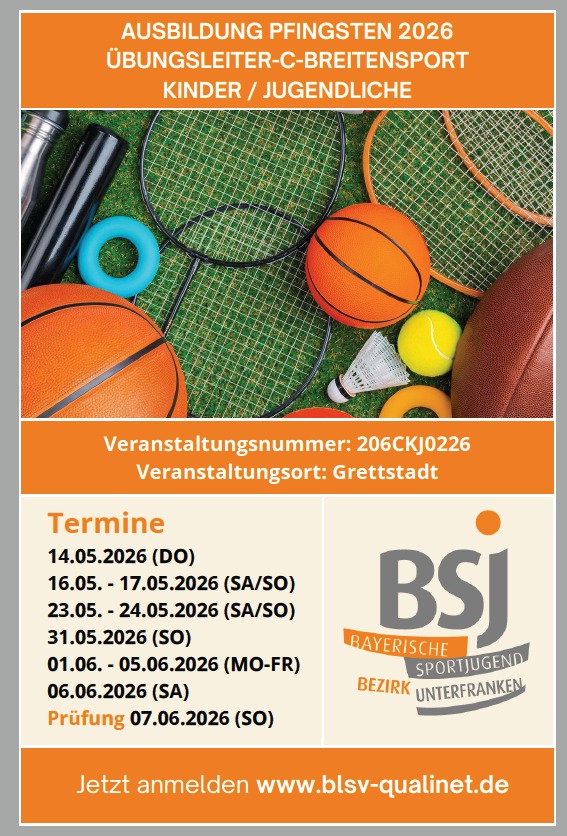 Du möchtest deine Übungsleiterlizenz erwerben? Dann nutze die Chance und nimm an der Ausbildung Pfingsten 2026 in Grettstadt teil.